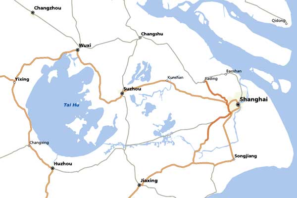 · Suzhou is located approximately 75 km west of Shanghai